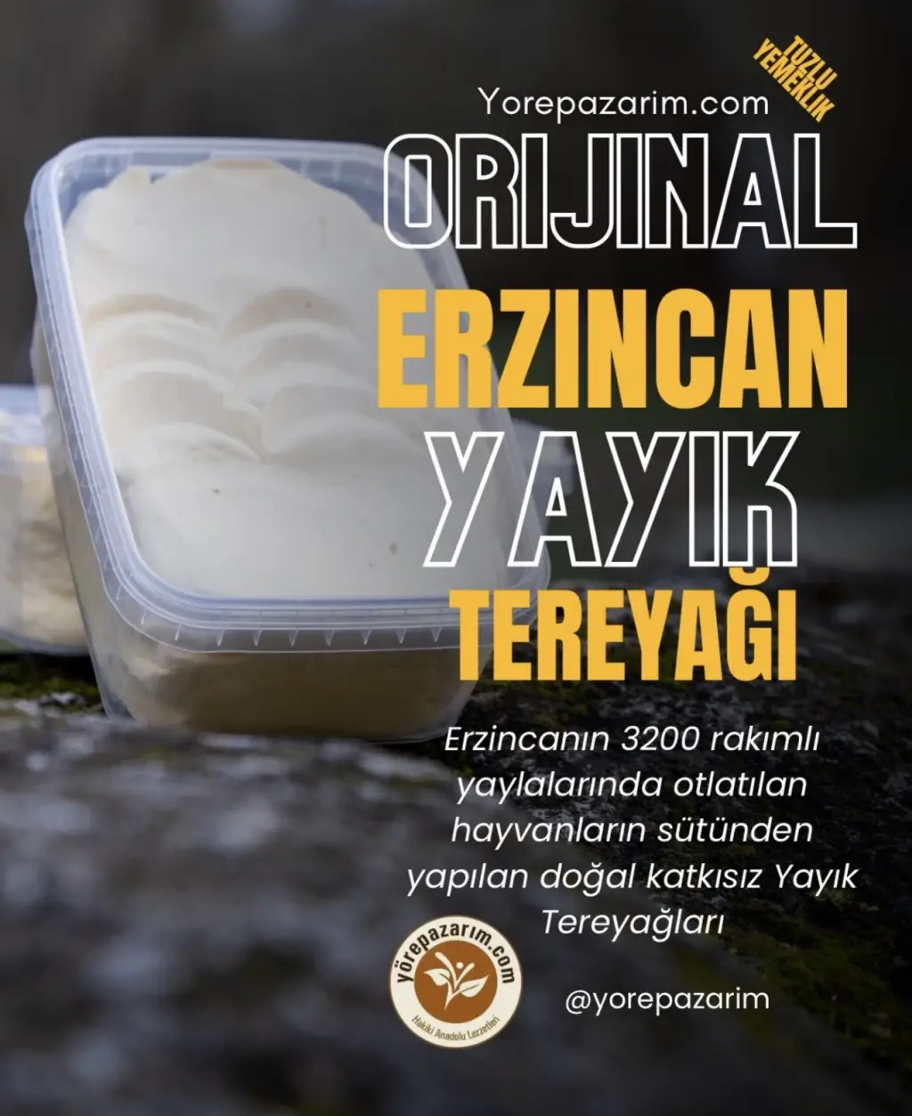 Yörepazarım Erzincan Yayık Tereyağı Tuzlu Yemeklik 980 gr – Geleneksel, Doğal Tereyağı